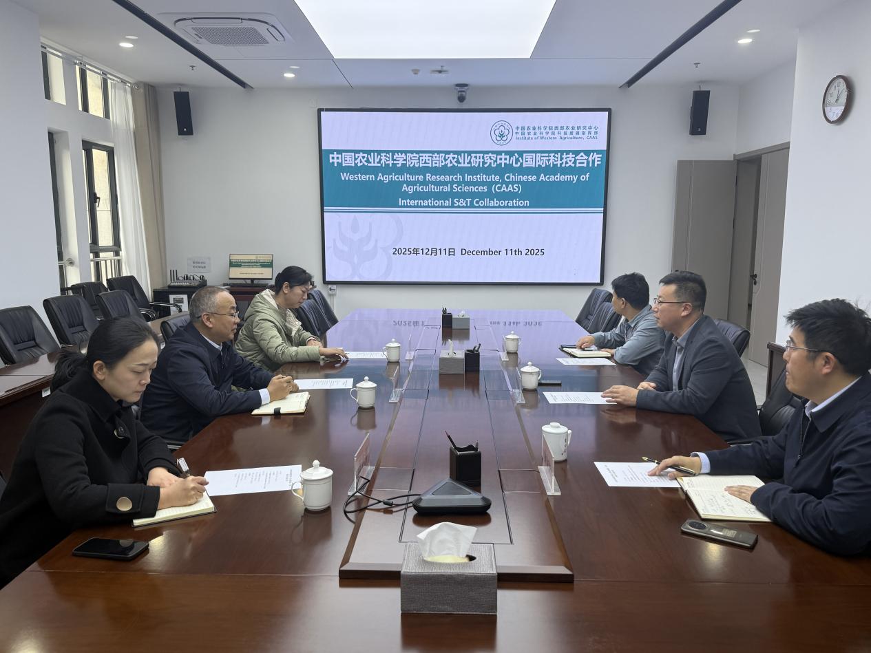 2025年12月11日,新疆维吾尔自治区科协党组成员、副主席摆晓宏一行到访中国农业科学院西部农业研究中心(科技援疆指挥部),就国际合作相关工作开展专题调研。西部中心副主任贾金龙参加会议,常务副主任何文清主持会议。