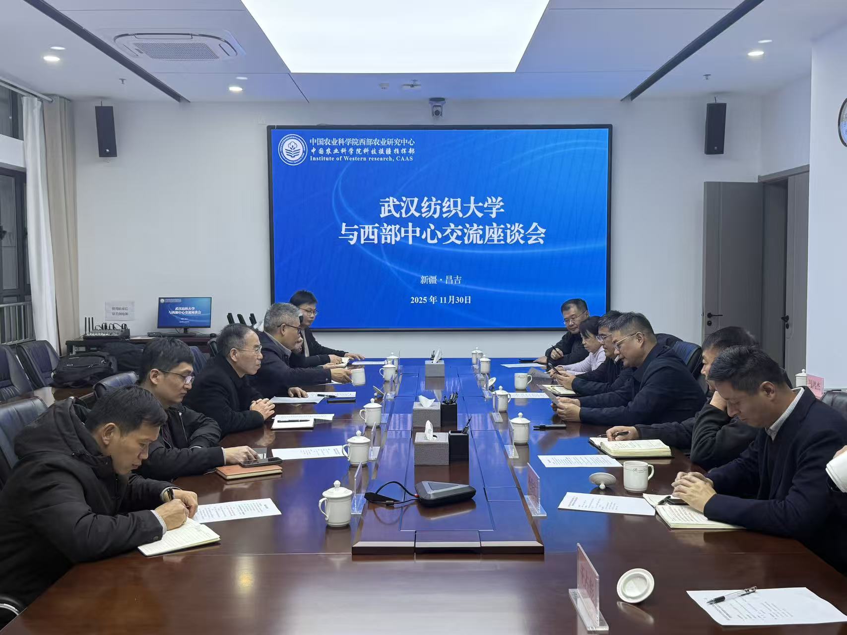 11月30日,武汉纺织大学校党委书记徐卫林院士率队到中国农业科学院西部农业研究中心(科技援疆指挥部)考察调研。西部中心主任(总指挥)、党委书记,棉花所所长、书记高雷主持座谈会,农高区党工委副书记、管委会主任张铭、西部中心有关领导和部分团队首席参会。