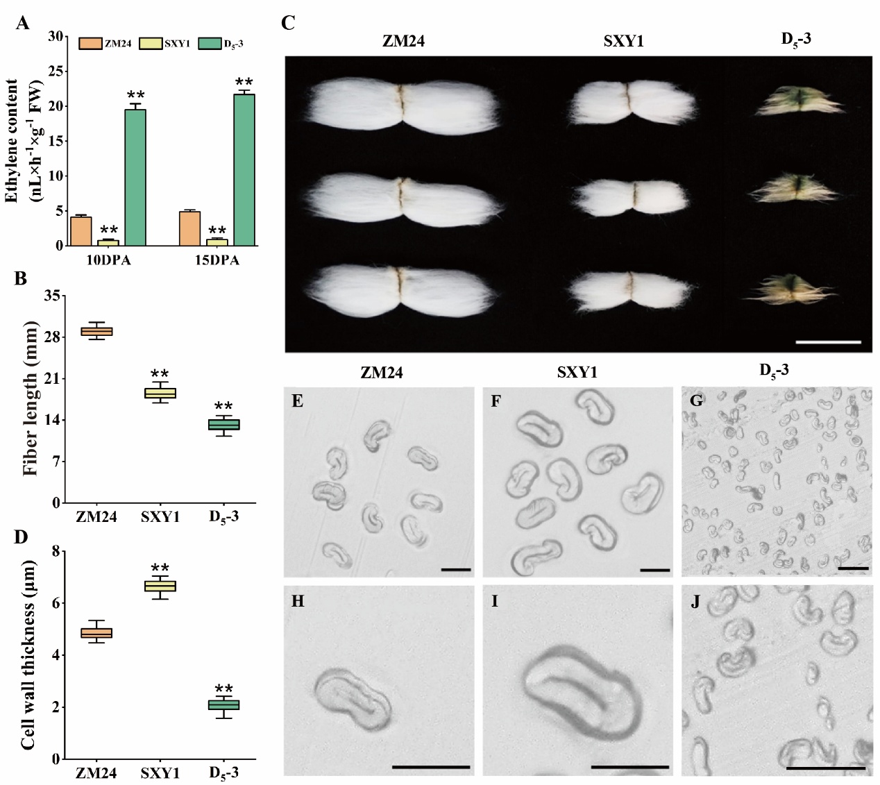 陆地棉、亚洲棉和雷蒙德氏棉乙烯含量、纤维长度和细胞壁厚度比较