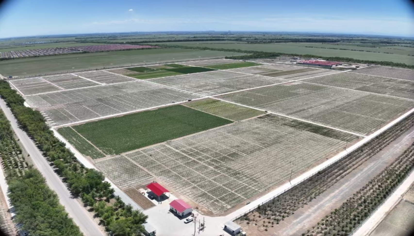 昌吉综合试验基地占地2000余亩,紧密围绕国家“一带一路”倡议及西部农业产业发展需求,致力于构建集农业数据观测、科研创新支撑、技术成果转化、人才实践培训于一体的综合平台,并积极打造面向中亚及“一带一路”沿线国家的农业国际合作窗口。在产业布局上,精准聚焦高品质棉花生产、农业生物安全、绿洲节水农业、智慧农业、重点粮食作物及特色经济作物六大领域,全面覆盖棉花、小麦、玉米、水稻、林果、西甜瓜、花生、甜菜、牧草等九类作物,形成“六大领域+九类作物”的系统化试验示范格局。目前,基地已汇聚20余支科研团队、100余名科研人员,年均承担科研试验与示范项目70余项,组织观摩交流活动超百场,培训人员近万人次,展现出强大的科研活力与服务能力。
